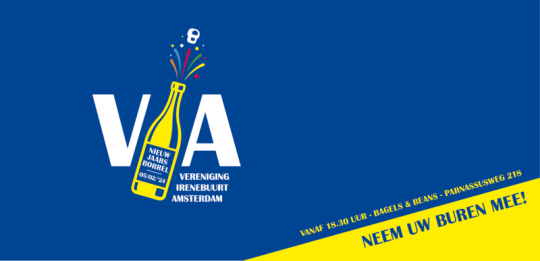 You are warmly invited to the annual New Year's gathering of the Irenebuurt Amsterdam Association ("VIA") on February 5th at 6:30 PM at Bagels & Beans, Parnassusweg 218.