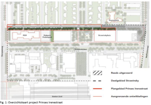 De gemeente werkt aan een kaderplan voor fase 2 van de herinrichting van de Prinses Irenestraat. Er komt een brede, groene zoom van circa 500 meter tussen de Parnassusweg en de Thomaskerk. De uitvoering staat gepland van maart 2026 tot mei 2028. VIA heeft hierop een eerste reactie gegeven en houdt de voortgang in de gaten.