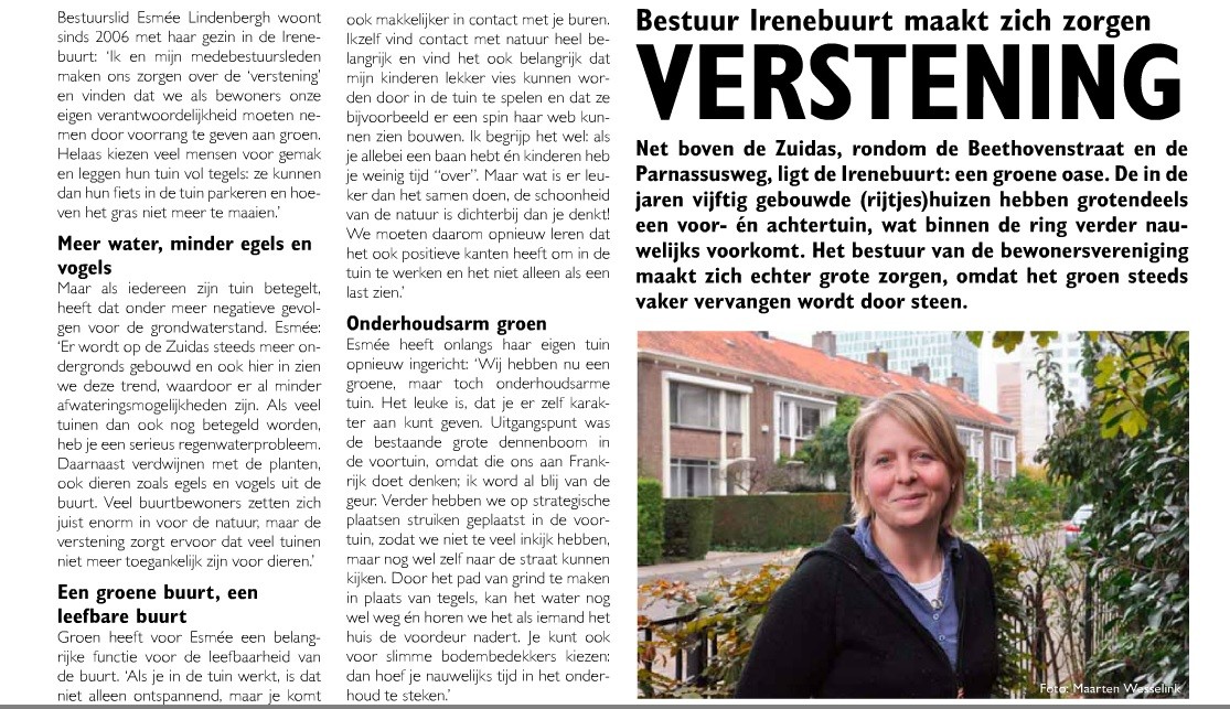 19/11/2014 De NMT Special "Energie in de stad", verspreid op 19 november 2014, bevat een interview met ons bestuurslid Esmée Lindenbergh over het belang van groene tuinen. Lees hier het artikel of klik op de foto.