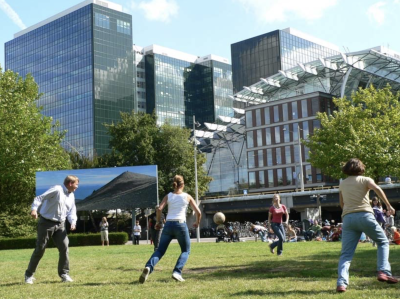 ...tussen ouders en ouders en tussen kinderen op het voetbalveld aan het einde van de Minervalaan / Prinses Irenestraat.
