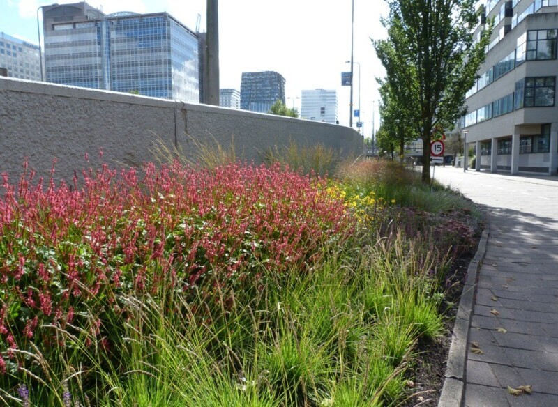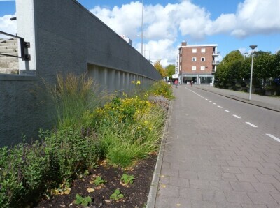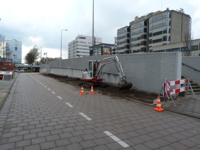 De grond naast de wanden van het viaduct in de Parnassusweg is in april 2012 in opdracht van de Dienst Zuidas gereed gemaakt voor beplanting.