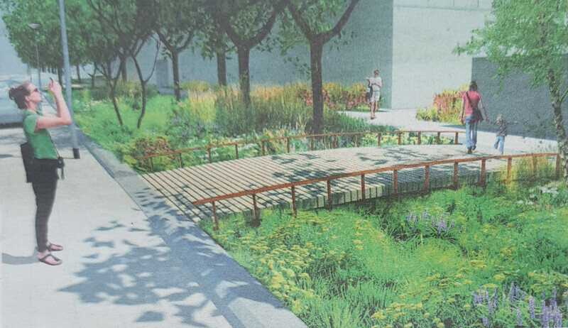 Om wateroverlast bij extreme buien tegen te gaan heeft de gemeente in de Prinses Irenestraat over de lengte van de hele straat een ‘groene gracht’ aangelegd: een verlaagde strook met gras, verschillende planten en bomen die water infiltreert, voor koelte zorgt op hete dagen en bijdraagt aan de biodiversiteit.